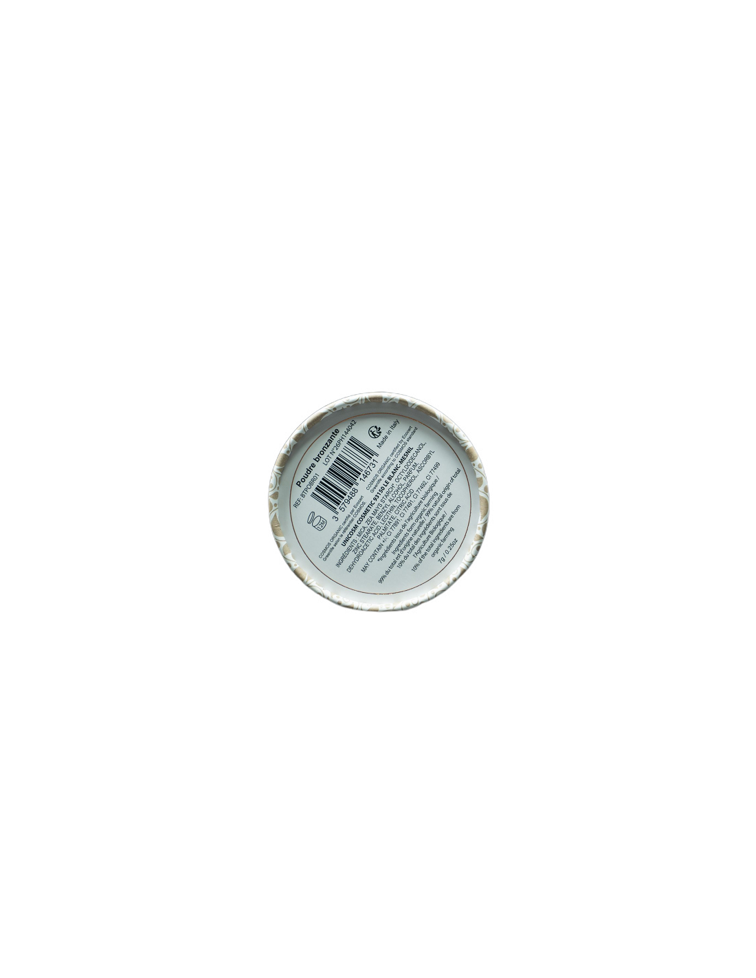 - Mica, Zea Mays Starch*, Octyldodecanol, Zinc Stearate, Benzyl Alcohol, Parfum, Dehydroacetic Acid, Lecithin, Tocopherol, Ascorbyl Palmitate, Citric Acid, May Contain +/-